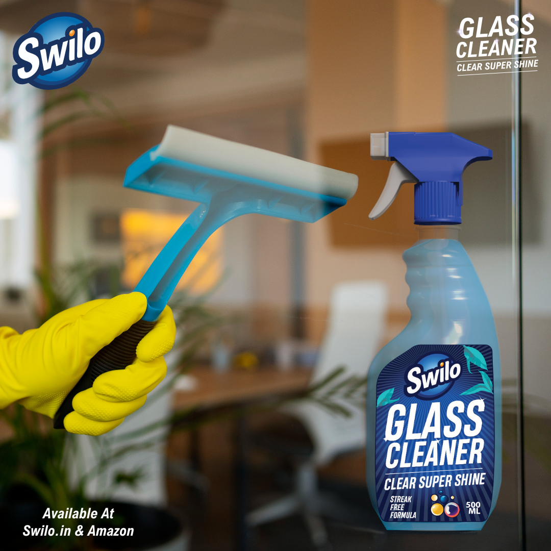 3️⃣ Swilo Glass Cleaner (500ml) – Streak-free formula for spotless glass, mirrors, and windows with crystal-clear brilliance.